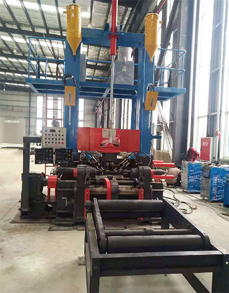 H型鋼組焊矯一體機是一種H型鋼焊接生產設備,集H型鋼的精確組立、二氧化碳或埋弧焊焊接、翼緣板焊接變形矯正于一體。設備占地面積少,單位生產面積的產出量高,是生產輕型焊接H型鋼和T型鋼的設備。