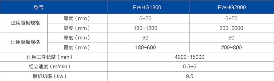 H型鋼自動組立機目前主要有HG -1800和HG -2000系列產品,分別適用于腹板高為180-1800mm和200 -2000mm的H型鋼。